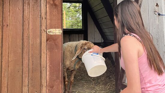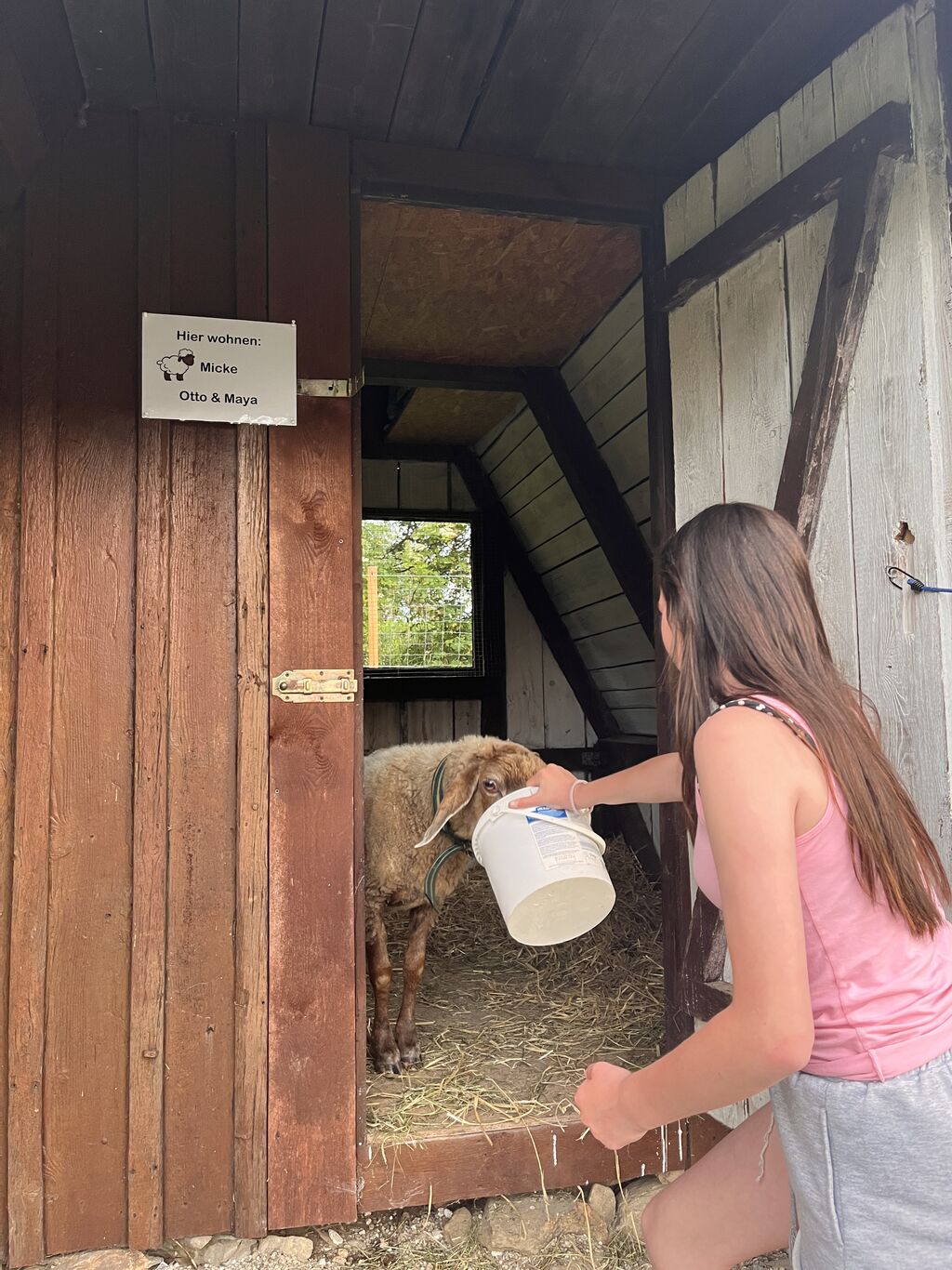 Bevor die Tiere einziehen konnten, gab es aber einiges zu tun. Den Zaun abdichten, ein richtiges Gehege bauen und natürlich einen Unterstand mit Stall fertigen. Mutterschaf Micke und ihre Lämmer Otto und Maya sind seit ihrem Einzug nun der Star in der Wohngruppe. Es gibt einen Schaf-Pflegeplan und alle Kinder beteiligen sich gern.