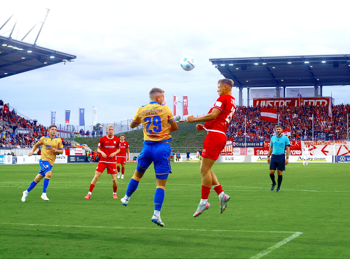 Der FSV hätte früh in Führung gehen können: In den ersten zehn Minuten gab es drei dickere Torchancen – den Kopfball von Maximilian Somnitz nach einer Ecke konnte ein Jenaer gerade noch wegschlagen.