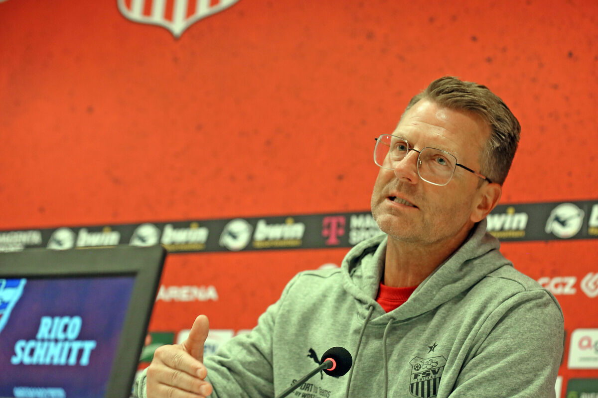 - Rico Schmitt bei seiner ersten Pressekonferenz als Chefcoach beim FSV