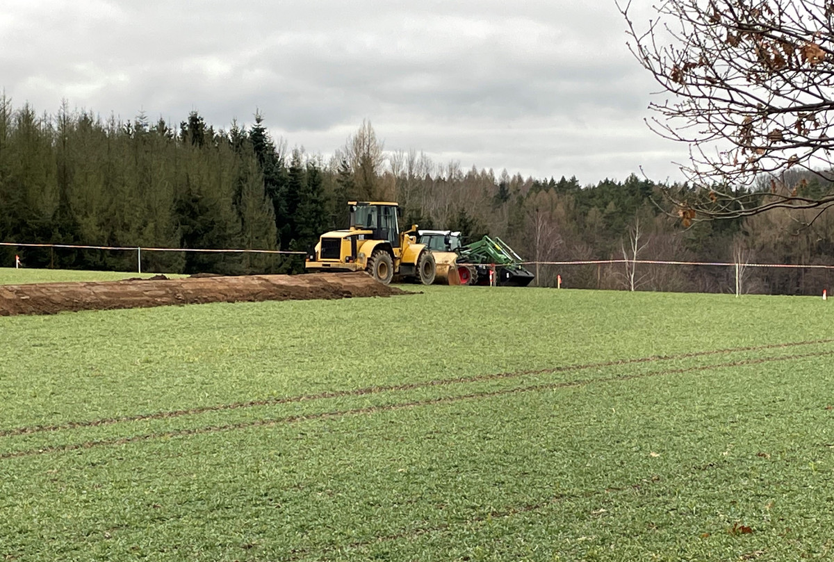 Vermutlich soll die Zufahrt so weitergebaut werden wie auf dem ersten Stück Feld. Es wurde Erde ausgehoben und es wurden Steine aufgefüllt, sicher für schwere Baufahrzeuge. „Was ich nicht dulde, ist ein Ausbau, so wie wir ihn jetzt sehen – mit Aushub und Verfestigung mit Frostschutzmittel und groben Steinen“, so der Grundstücksbesitzer.