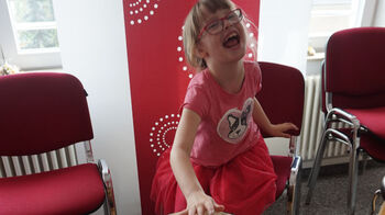 Letzteres passierte vor allem, als die jüngste Gruppe sich an die Instrumente begab. Ein wildes Durcheinander an Getrommel und Geschrei entlud sich in Kürze vor den Augen von Markus und den Erziehern. In den Kinderaugen dagegen konnte man das Leuchten sehen. Es dauerte nicht lange, dann waren alle Kinder ein wenig erschöpft, aber auch aufnahmefähiger. So konnte auch hier zum Schluss schon ein kleiner Rhythmus gespielt werden. Kontakt mit Schlaginstrumenten hatte von den bisherigen Teilnehmern noch keiner, mit Spaß und Spannung dabei waren trotzdem alle.