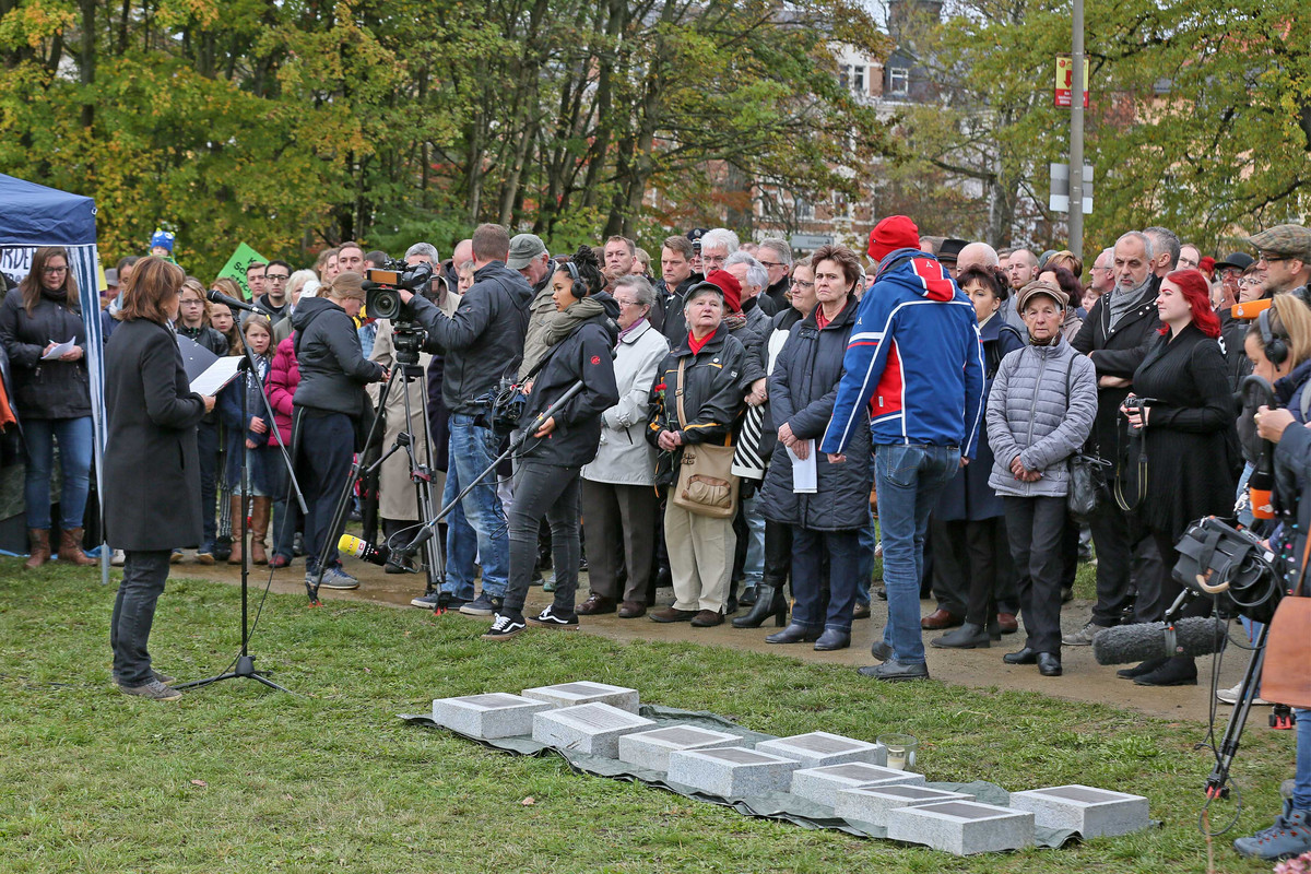 Überschattet wurde die Einweihung von einem Tumult. Eine linke Aktivistin hatte einen von der AfD bereits am Samstag abgelegten Kranz beschädigt. Er landete in einem Mülleimer. Als Polizisten die Frau zur Identitätsfeststellung ins Polizeiauto brachten, wurden sie bedrängt. Die Veranstaltung ging dennoch friedlich zu Ende.