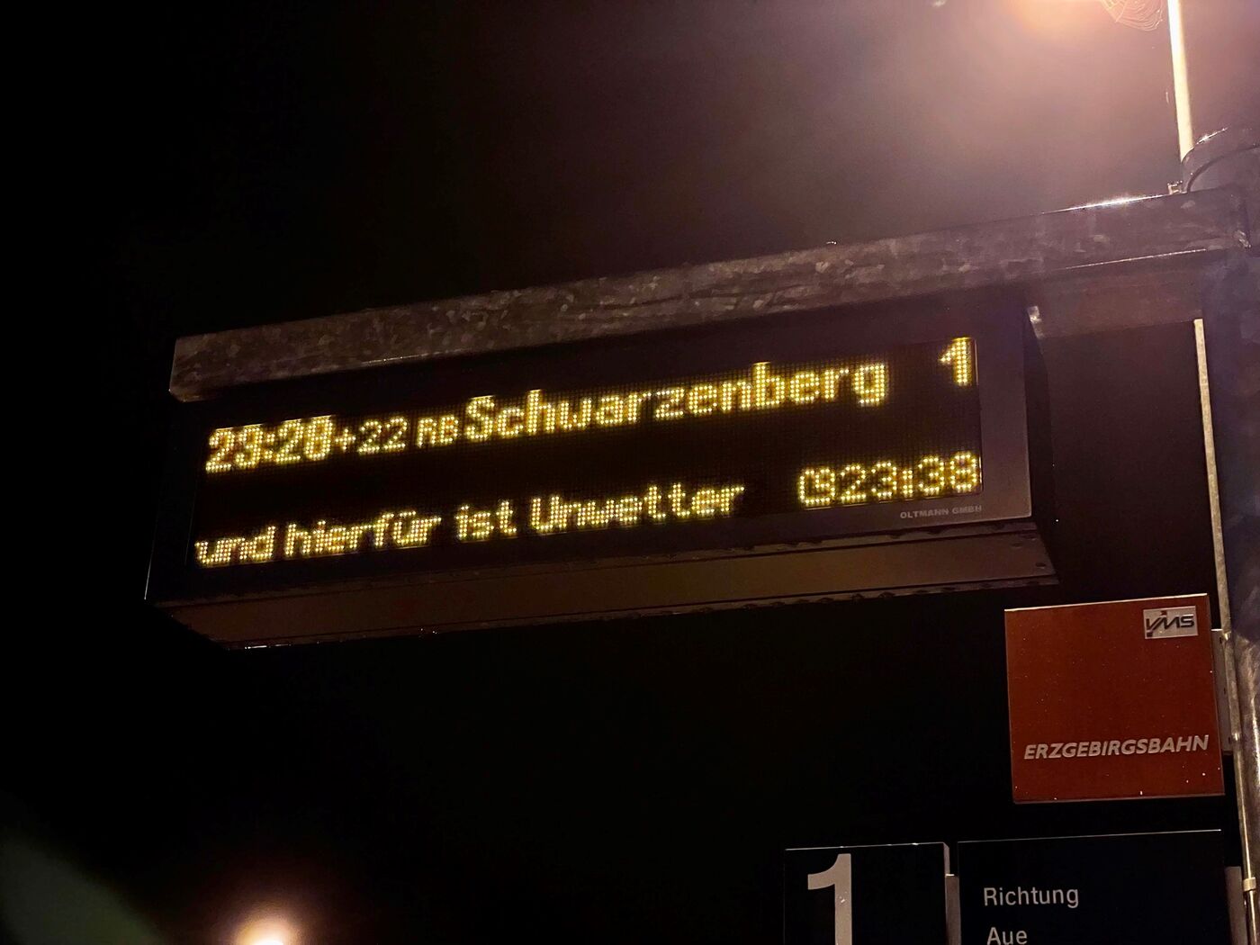 Der Bahnverkehr auf der Strecke Zwickau - Schwarzenberg wurde stark beeinträchtigt. Die Gleise bei Fährbrücke wurden verschlammt. Stand heute Nacht kann nur ein Gleis genutzt werden. Aus dem Erzgebirge wurden Stromausfälle gemeldet.