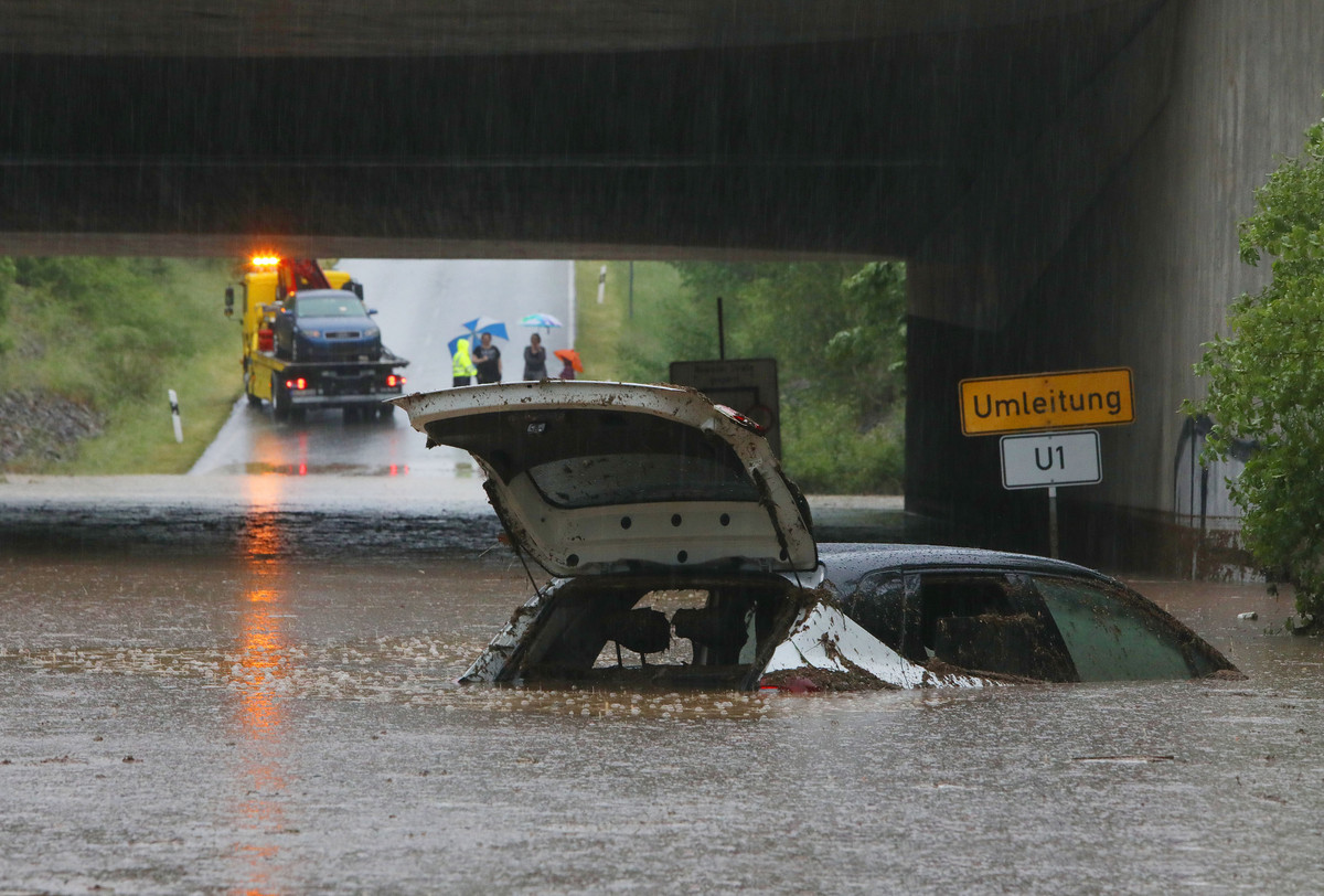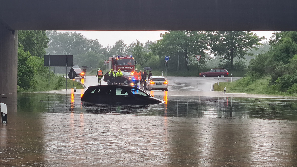 - Unter der B 93-Brücke bei Crossen sammelte sich das Wasser. Mehrere Autos blieben darin stecken. Ein älterer Mann musste aus seinem Auto befreit werden.