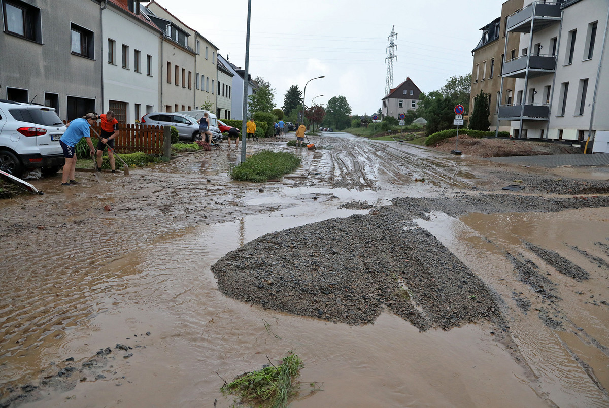 - In Berthelsdorf kamen die Wassermassen von einem Feld und schossen die Crossener Straße hinunter. In zwei Wohnhäusern wurden Keller überflutet.