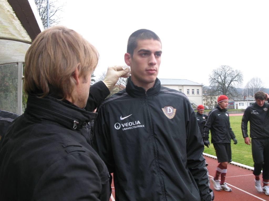 Die Kicker von Dynamo haben am Dienstagmittag in Freital-Hainsberg einen Laktattest absolviert. Der Test dient Trainer Ralf Loose zur Leistungs- und Fitnessdiagnose. Mittendrin war der neue Abwehrspieler der Schwarz-Gelben Vujadin Savic. Der Serbe wird bis zum Saisonende von Girondins Bordeaux aus der ersten französischen Liga ausgeliegen. "Ich wusste, dass ich wechseln muss, weil ich in Bourdeaux nicht gespielt habe. Dann gab es die Chance, zu Dresden zu wechseln. Dann hab ich bei Youtube gesehen, dass Dynamo fantastische Fans hat und was das für ein großartiger Verein ist. Damit war alles klar.", so Savic, der bei Dynamo die Rückennummer zwei tragen wird.Savic ist U-21-Nationalspieler Serbiens und soll hier in Dresden vor allem Spielpraxis sammeln. In der französischen Liga kam der Defensivakteur in der aktuellen Saison nur auf einen Einsatz für Bordeaux. Im Sommer 2010 war er von Roter Stern Belgrad nach Südfrankreich gewechselt. Zuletzt hatte auch der abstiegsbedrohte Bundesligist SC Freiburg Interesse an einer Verpflichtung Savics gezeigt. "Wir sind sehr froh, dass wir mit Vujadin einen hochmotivierten jungen Spieler für uns gewinnen konnten. Er wird uns sicherlich mit seiner Stärke im Kopfballspiel weiterhelfen, außerdem hat er eine sehr gute technische Ausbildung genossen", erklärte Dynamos Sportlicher Leiter Steffen Menze Savic ist gemeinsam mit seiner Freundin Mirka - einer bekannten serbischen Schauspielerin - und seinem Sohn zu seinem ersten Training nach Dresden gekommen. "Das ist sehr wichtig für mich, dass meine Familie hier mit dabei ist."Der 21-Jährige ist 1,94 Meter groß, spricht noch kein deutsch. "Aber es ist gut, dass ich mich mit Zlatko Dedic und Muhamed Subasic verständigen kann.", so Savic. Nach Mittelfeldspieler Clemens Walch, der vom 1. FC Kaiserslautern ausgeliehen wurde, ist er der zweite Neuzugang in der Winterpause.