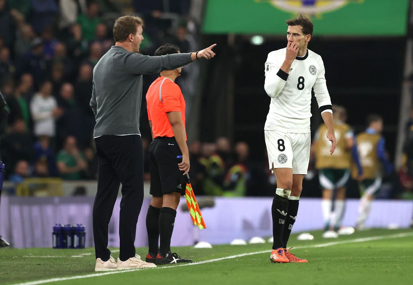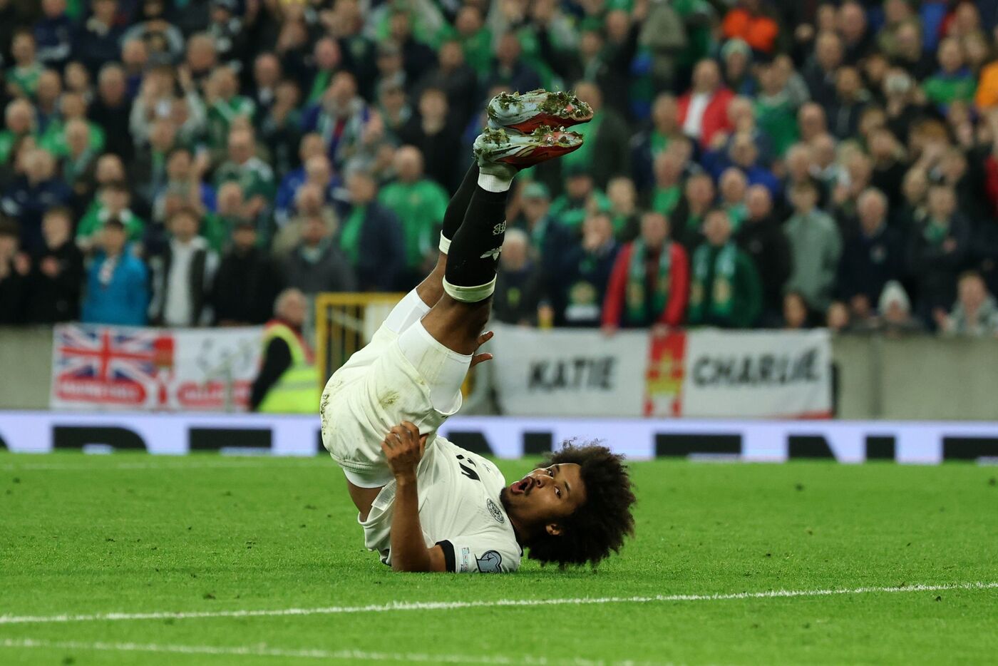 Eine erste Schrecksekunde hatte die deutsche Mannschaft in der 14. Minute zu überstehen, als Daniel Ballard den Ball wuchtig ins Tor bugsierte, doch es lag zuvor eine Abseitsposition vor. Der Lärmpegel beim Torschrei zeigte dem DFB-Team aber, was es tunlichst vermeiden sollte. Die Sehnsucht nach der ersten WM-Teilnahme seit 1986 ist in Nordirland jedenfalls riesengroß.