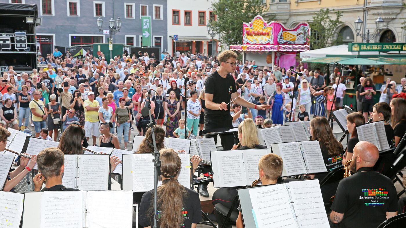 - Das Sinfonische Blasorchester des Jugendblasorchester Zwickau begleitet den offiziellen Startschuss u. a. mit Rock-Klassikern.