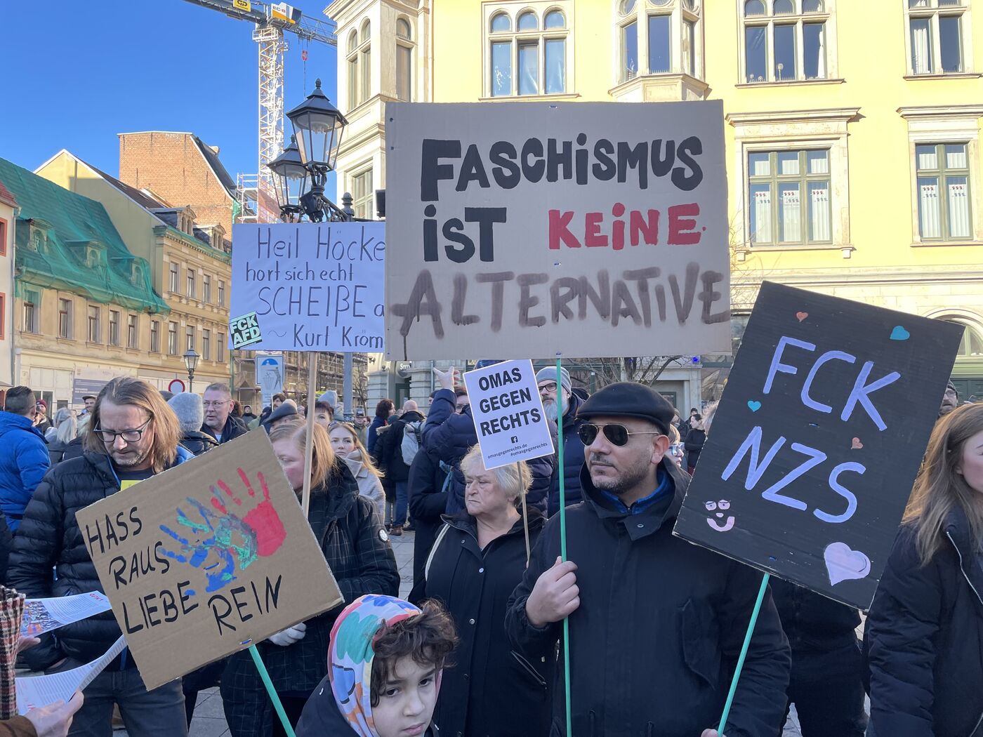 - Tausende haben sich Sonntagnachmittag auf dem Hauptmarkt in Zwickau eingefunden, um an der Demo teilzunehmen.
